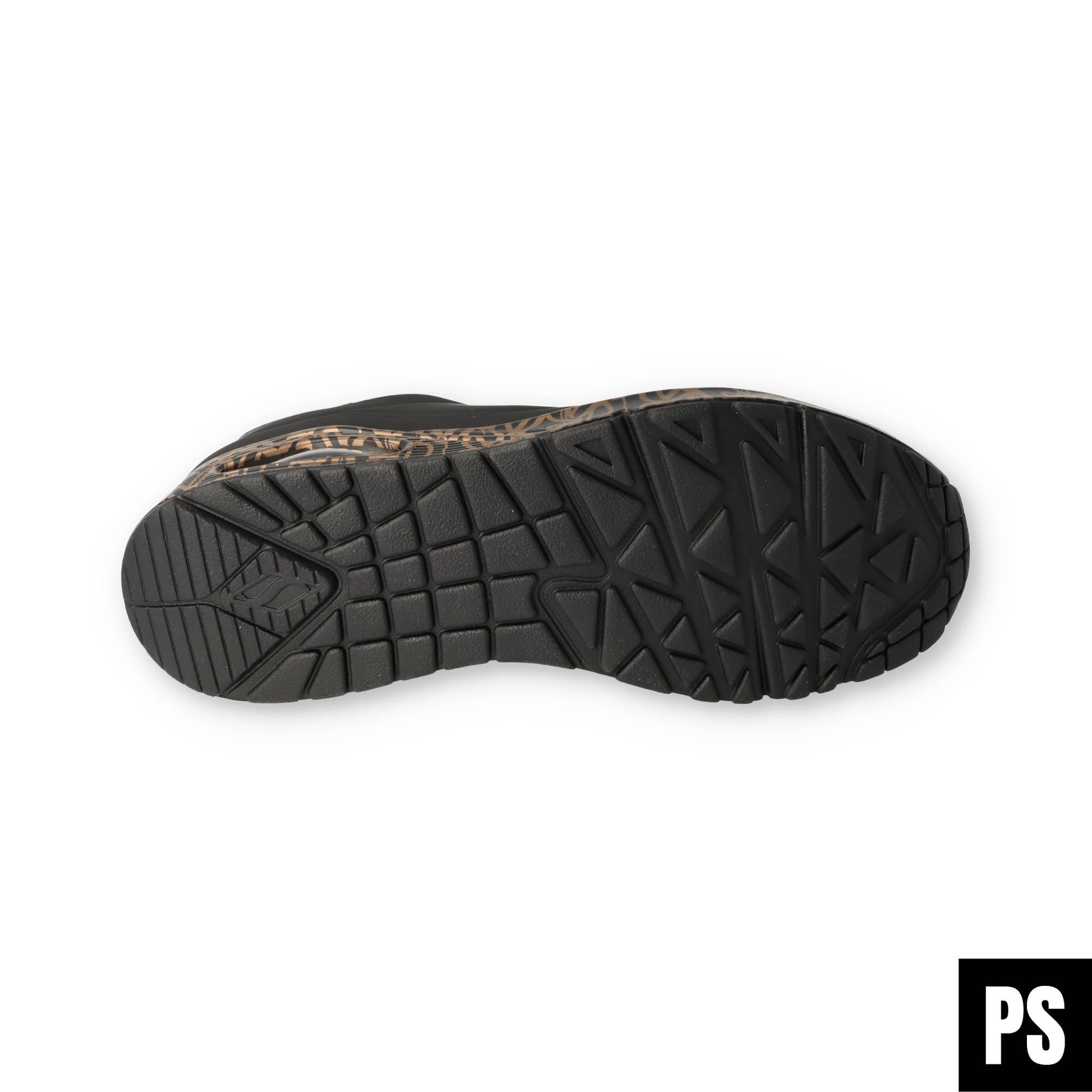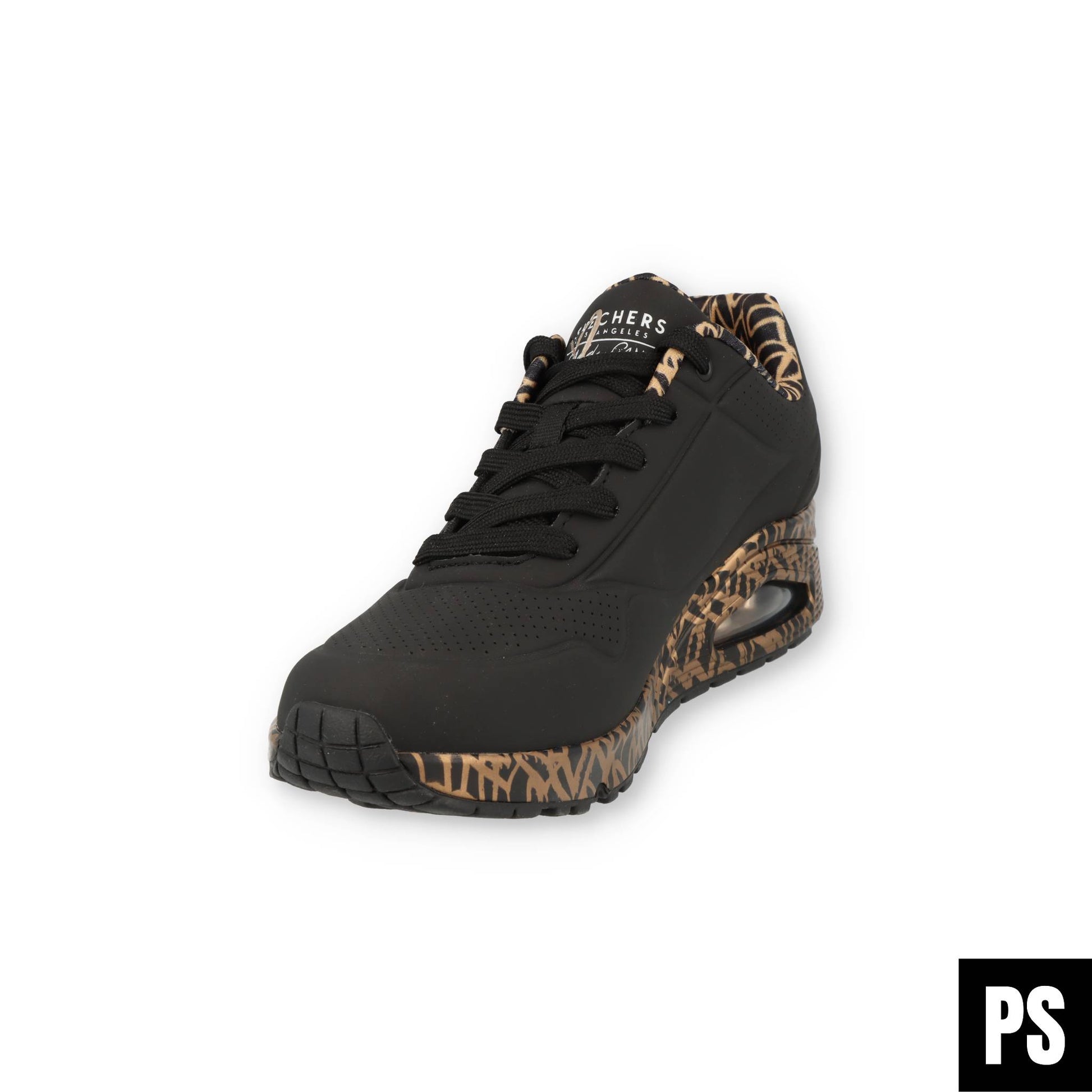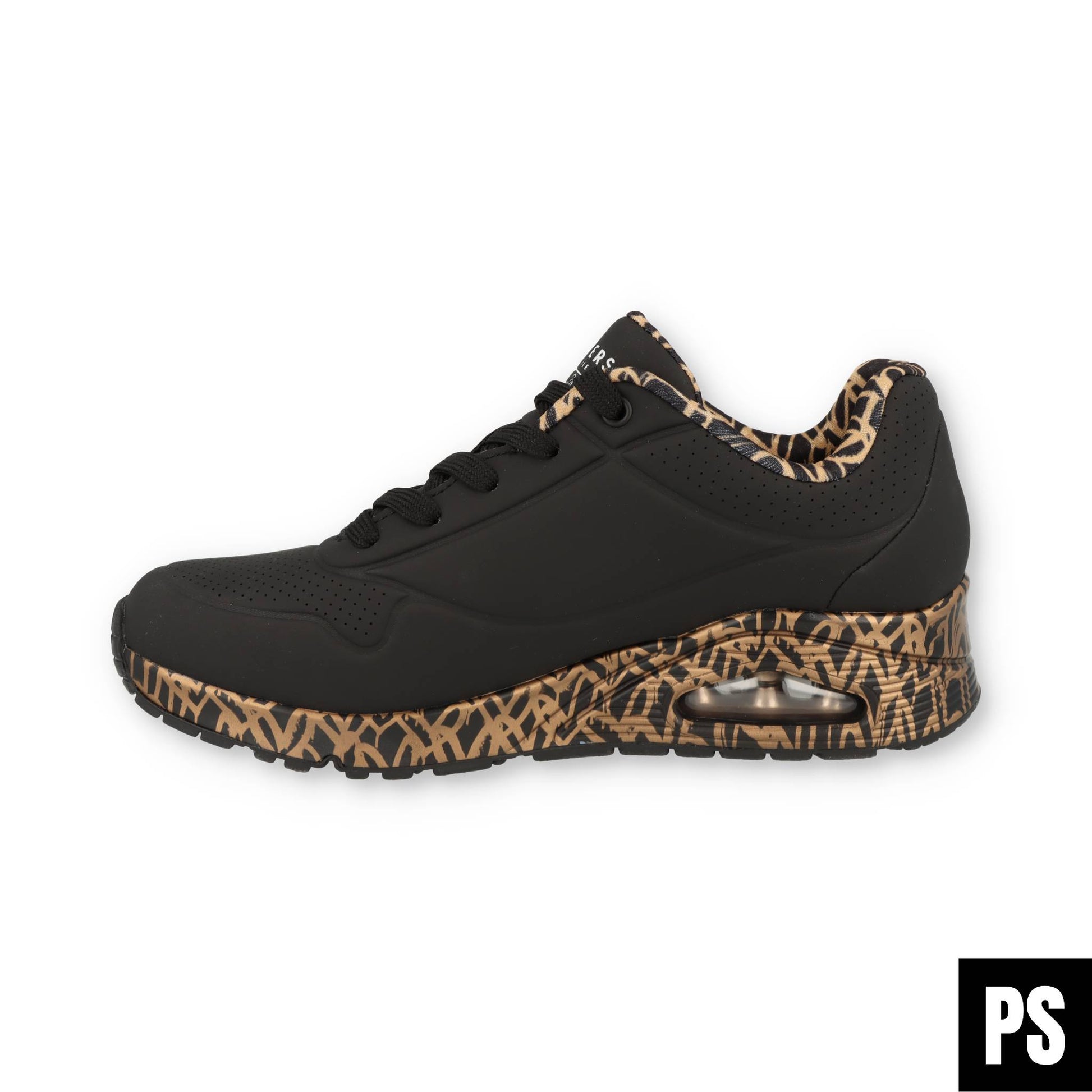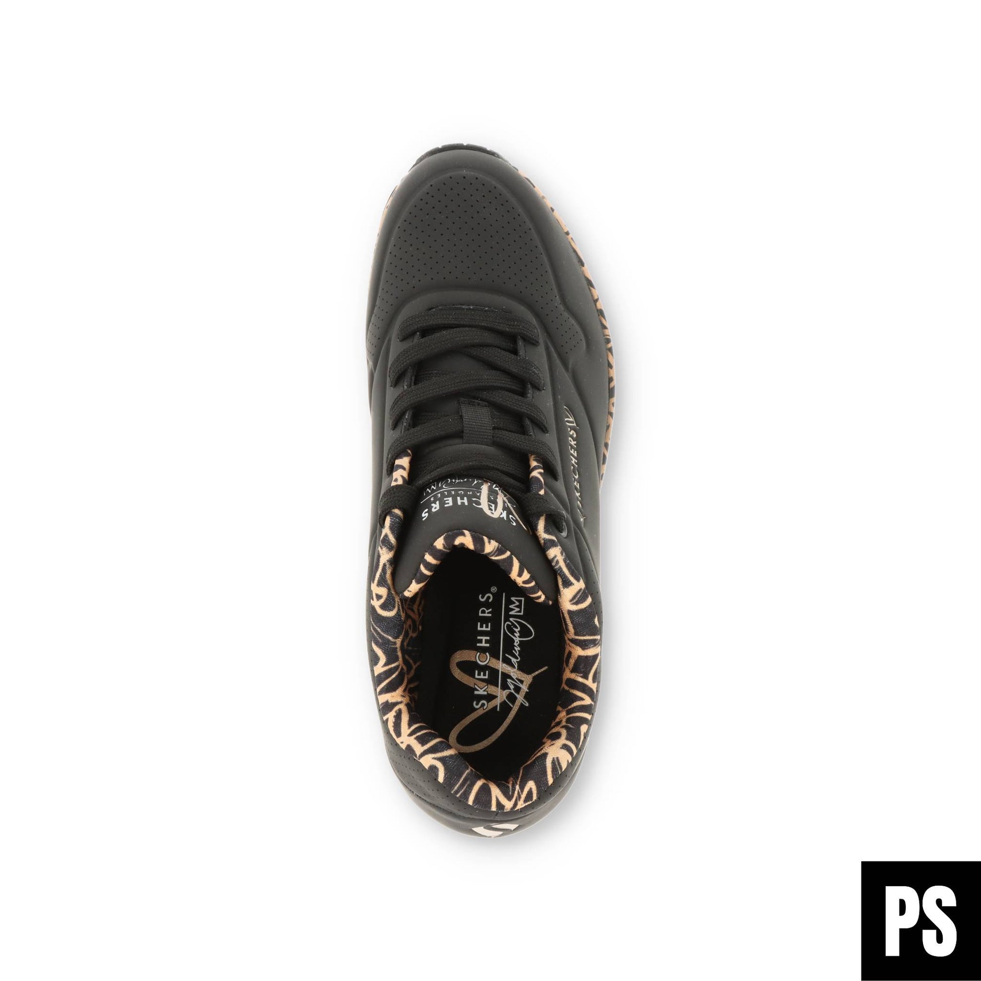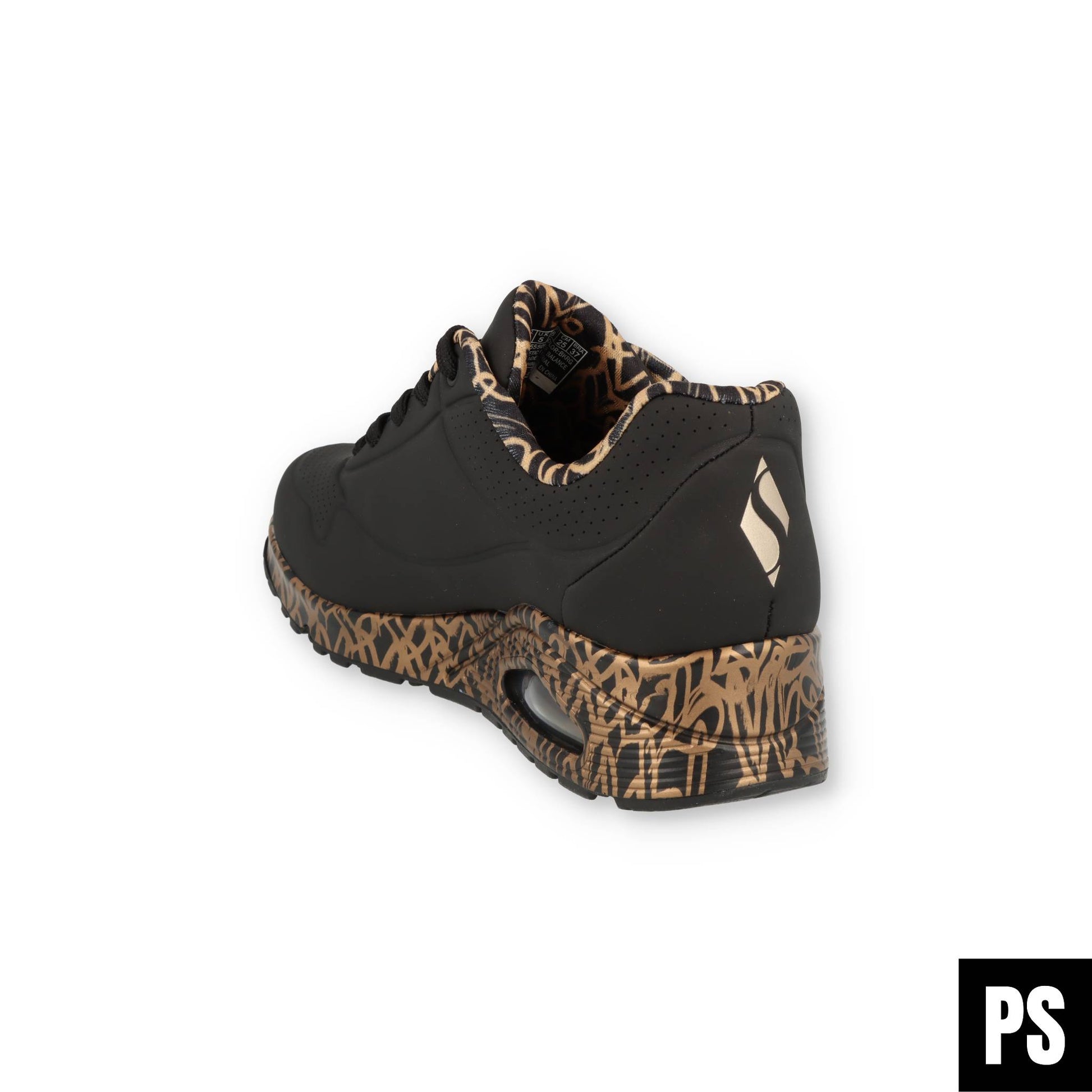 Mit dem Skechers Uno – Loving Love setzt du auf ein modisches Highlight. Das edle Schwarz wird durch die goldfarbenen Herz-Graffitis von Künstler JGoldcrown einzigartig in Szene gesetzt – ein Schuh, der sofort ins Auge fällt.