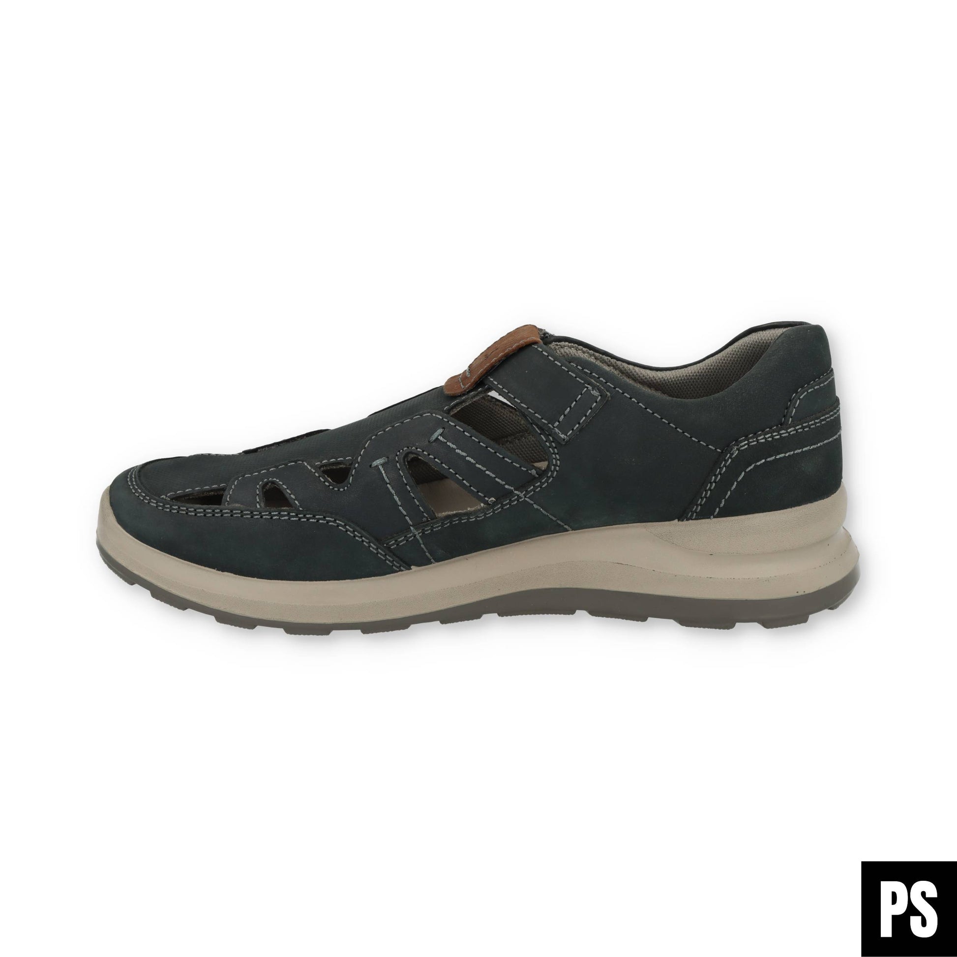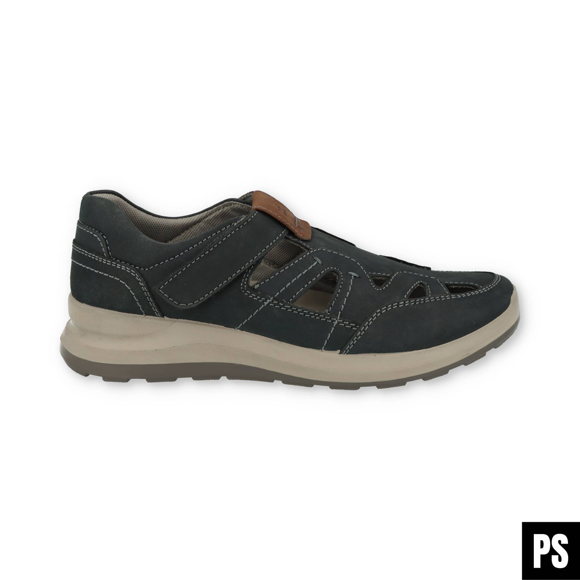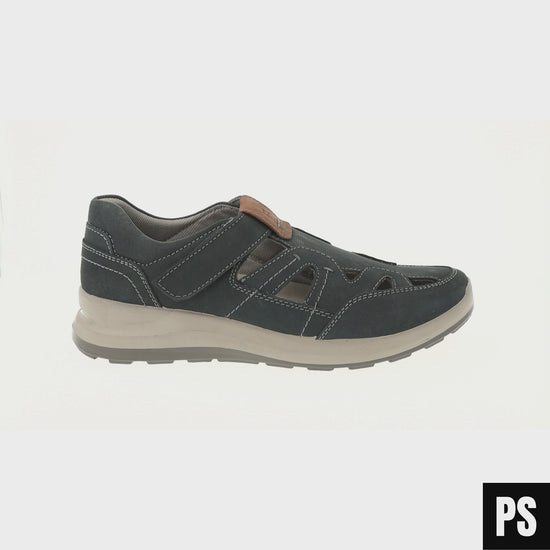 Das hochwertige Obermaterial in stilvoller Indigo-Kombi sorgt für einen markanten Look, während die seitlichen Aussparungen für angenehme Belüftung an warmen Tagen sorgen. Dank des praktischen Klettverschlusses schlüpfst Du schnell hinein und passt den Schuh optimal an Deinen Fuß an – ganz ohne Schnürsenkel-Stress.