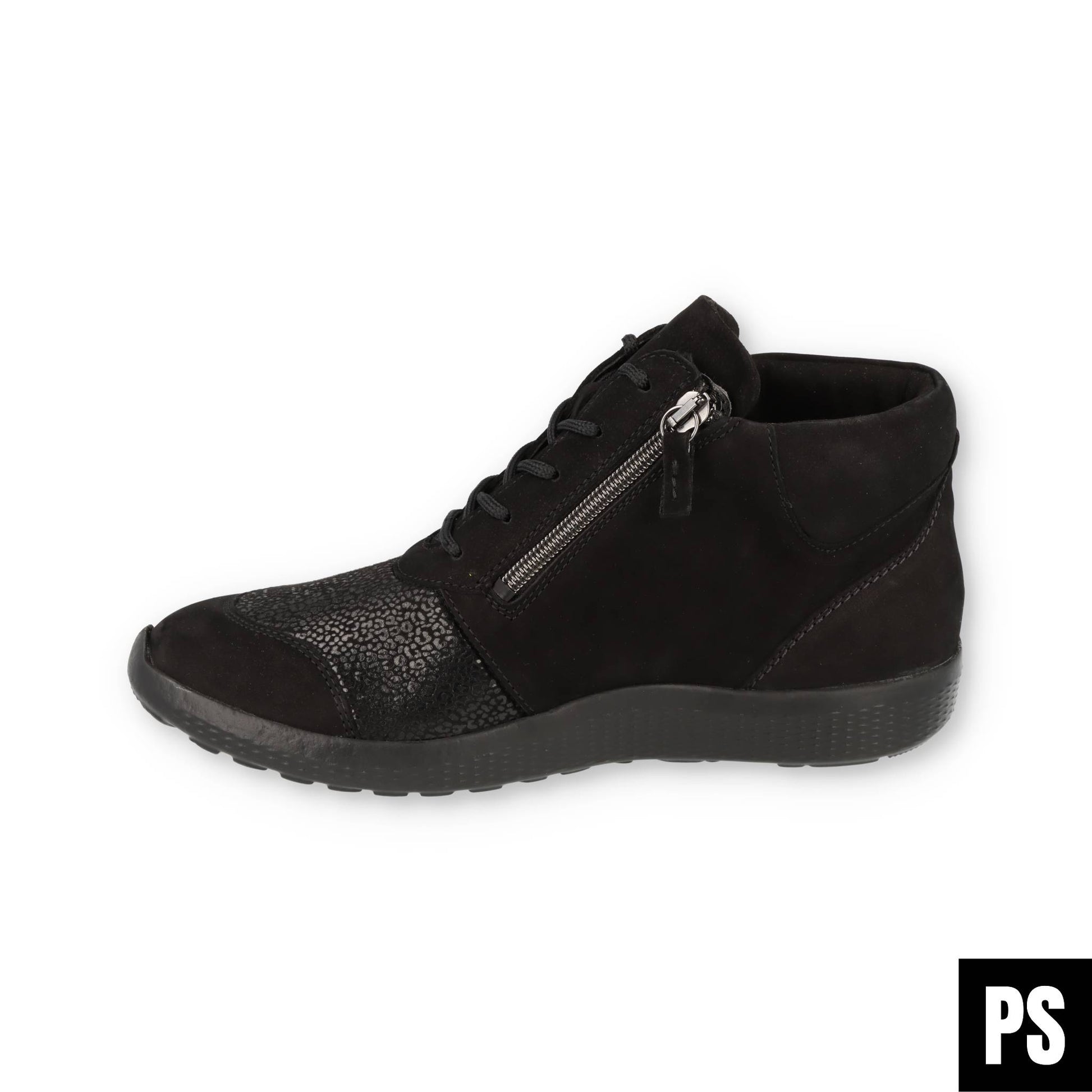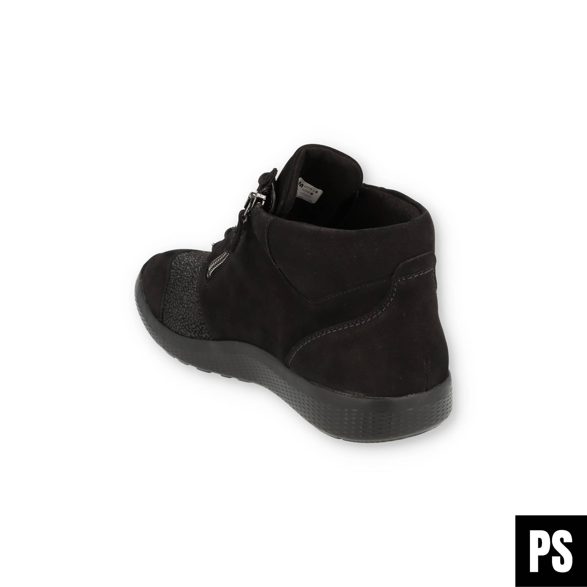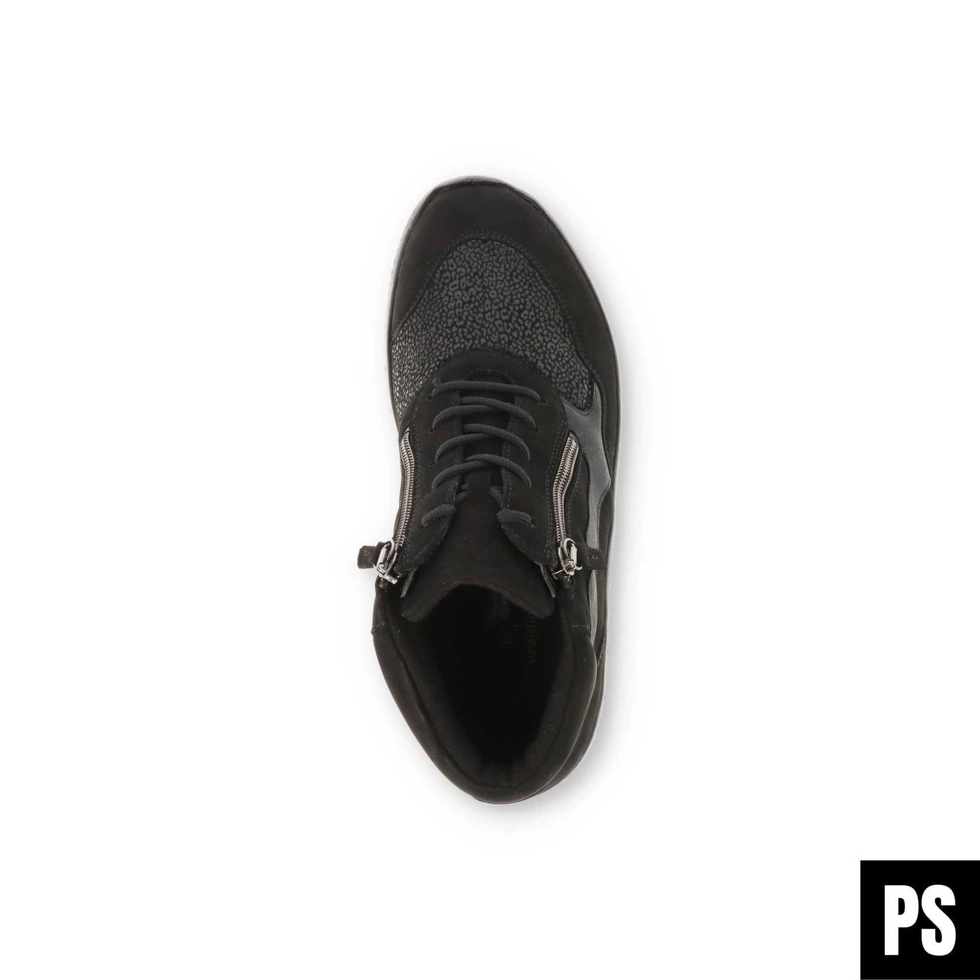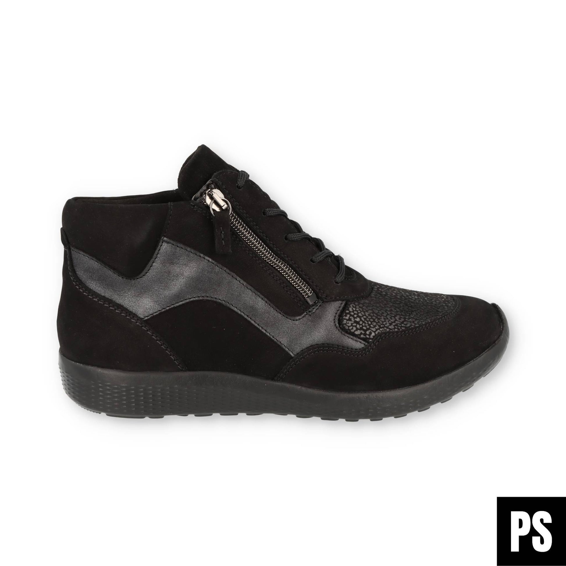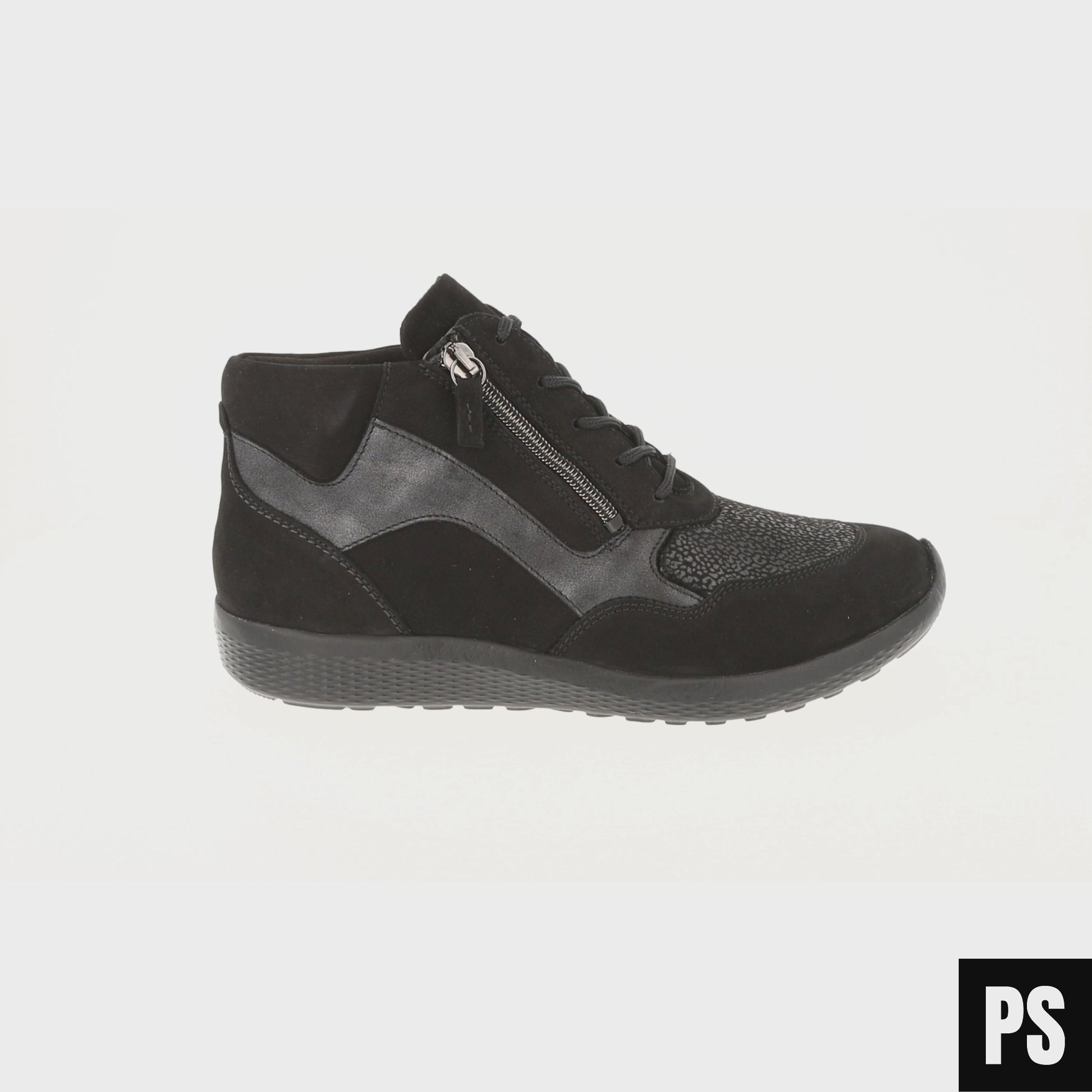 Der M-Ira Damen-Sneaker vereint sportliche Eleganz mit höchstem Tragekomfort und praktischem Design. Der Materialmix in schwarz in Kombination mit dem dezenten Animalprint verleiht dem Schuh eine edle Optik. Der seitliche Reißverschluss ermöglicht ein einfaches An- und Ausziehen und die leichte Sohle sorgt für guten Halt und angenehmes Gehen. Zusätzlich bietet das STRETCH Obermaterial einen orthopädischen Tragekomfort ohne Drücken oder Scheuern.